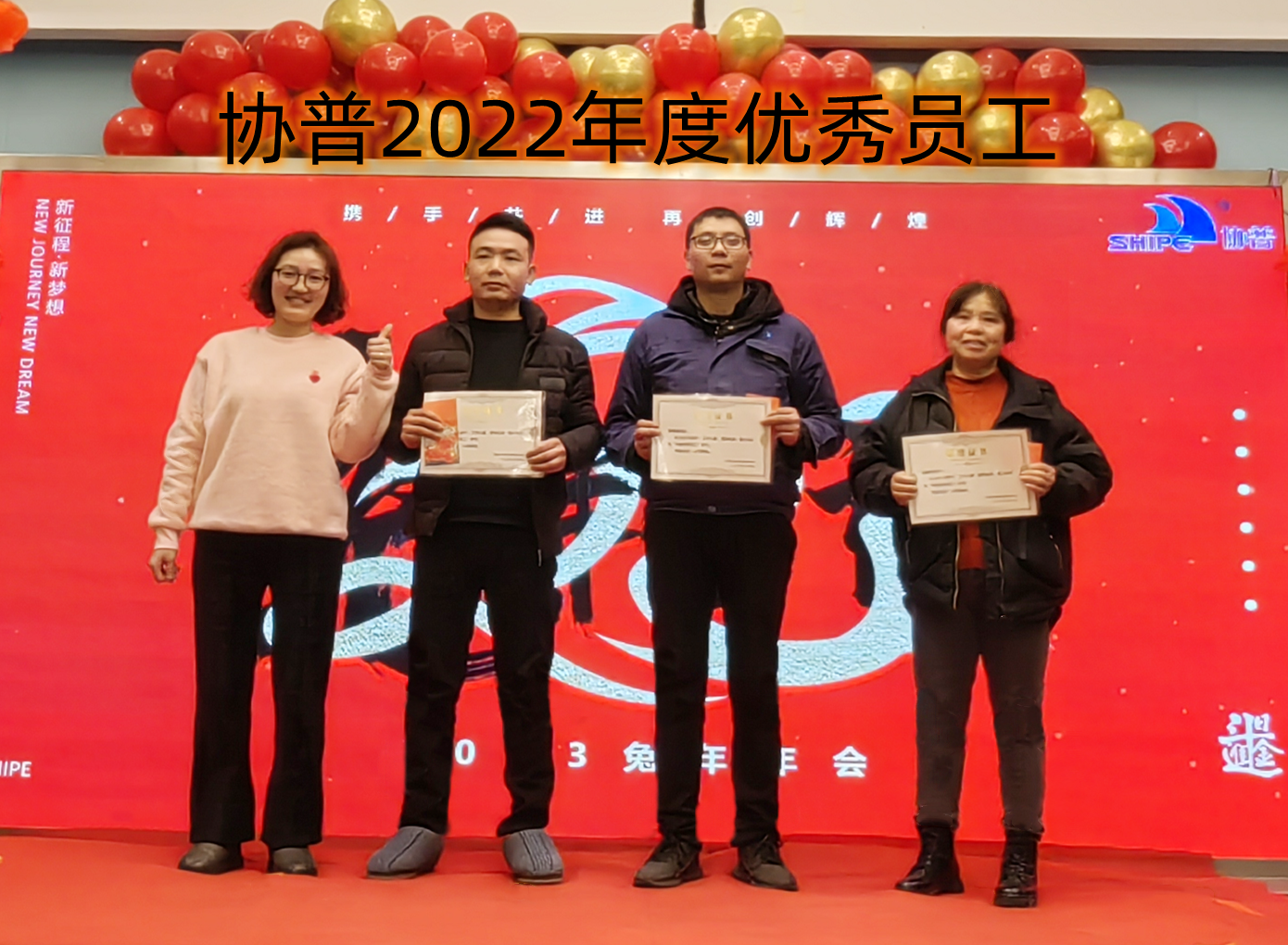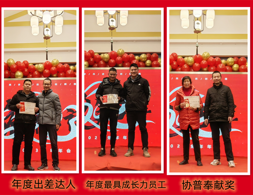 趙總致辭后,公司為2022年度表現(xiàn)優(yōu)異的團(tuán)隊(duì)和個(gè)人進(jìn)行了表彰。人才是公司生存和發(fā)展之本。公司發(fā)展的每一步都離不開(kāi)每個(gè)協(xié)普人的努力和付出。本年度公司共評(píng)選出三名優(yōu)秀員工——陶?;顒?、徐金鳳,“2022年度突出貢獻(xiàn)獎(jiǎng)”——張傳東、桂佳俊,“2022年度敬業(yè)獎(jiǎng)”——陳阿龍,“年度宣傳小能手”——宋玉秋;“協(xié)普年度出差達(dá)人”——胡金龍,“年度最具成長(zhǎng)力員工”——王傳銀,“5S進(jìn)步團(tuán)體”——技術(shù)部、車(chē)間鉚焊班,“質(zhì)量進(jìn)步團(tuán)體”——質(zhì)量部,“協(xié)普奉獻(xiàn)獎(jiǎng)”——?jiǎng)⑼ビ瘛?/span>