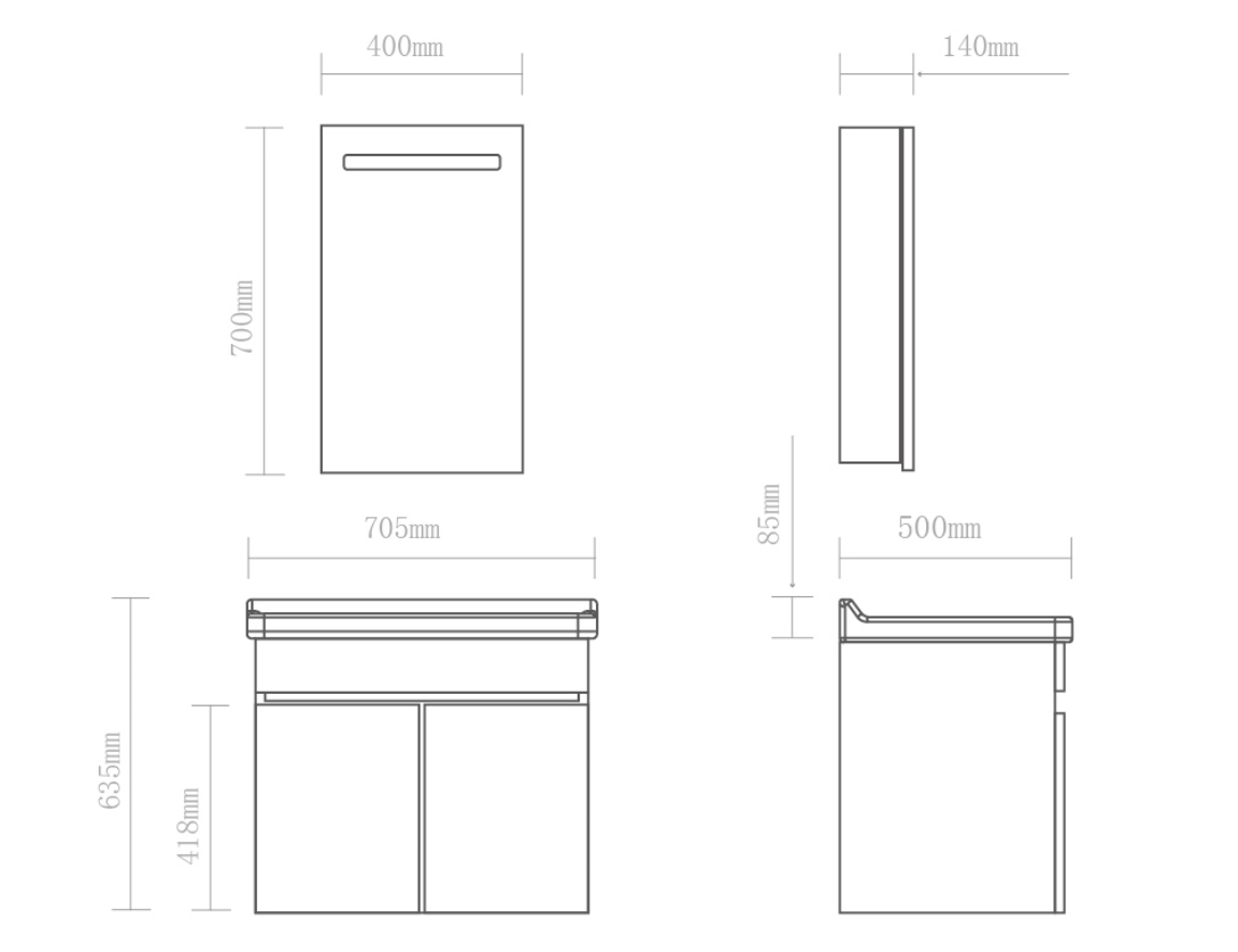 尺寸:化妝鏡 400X700X140 (mm)+浴室柜 705X500X635 (mm)
